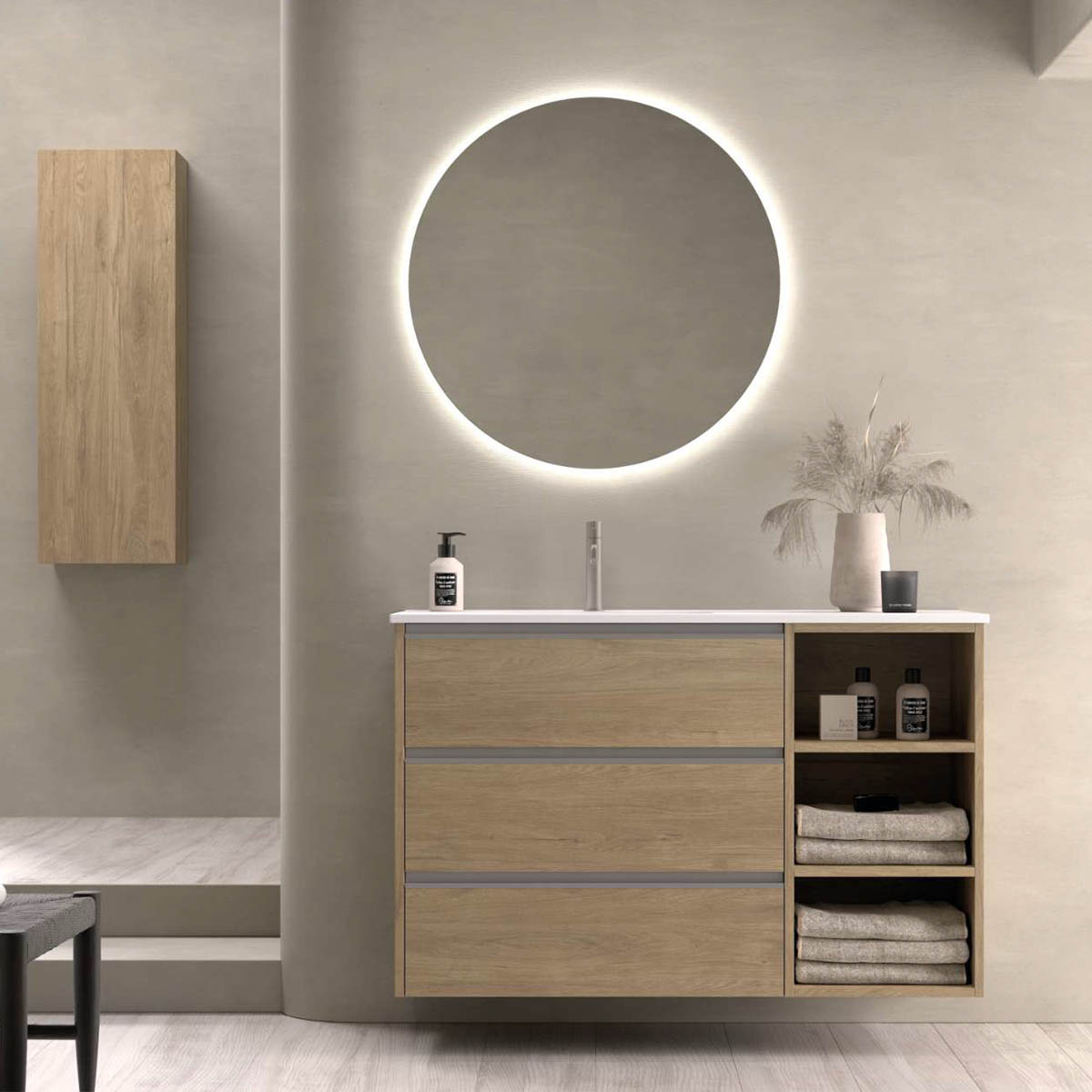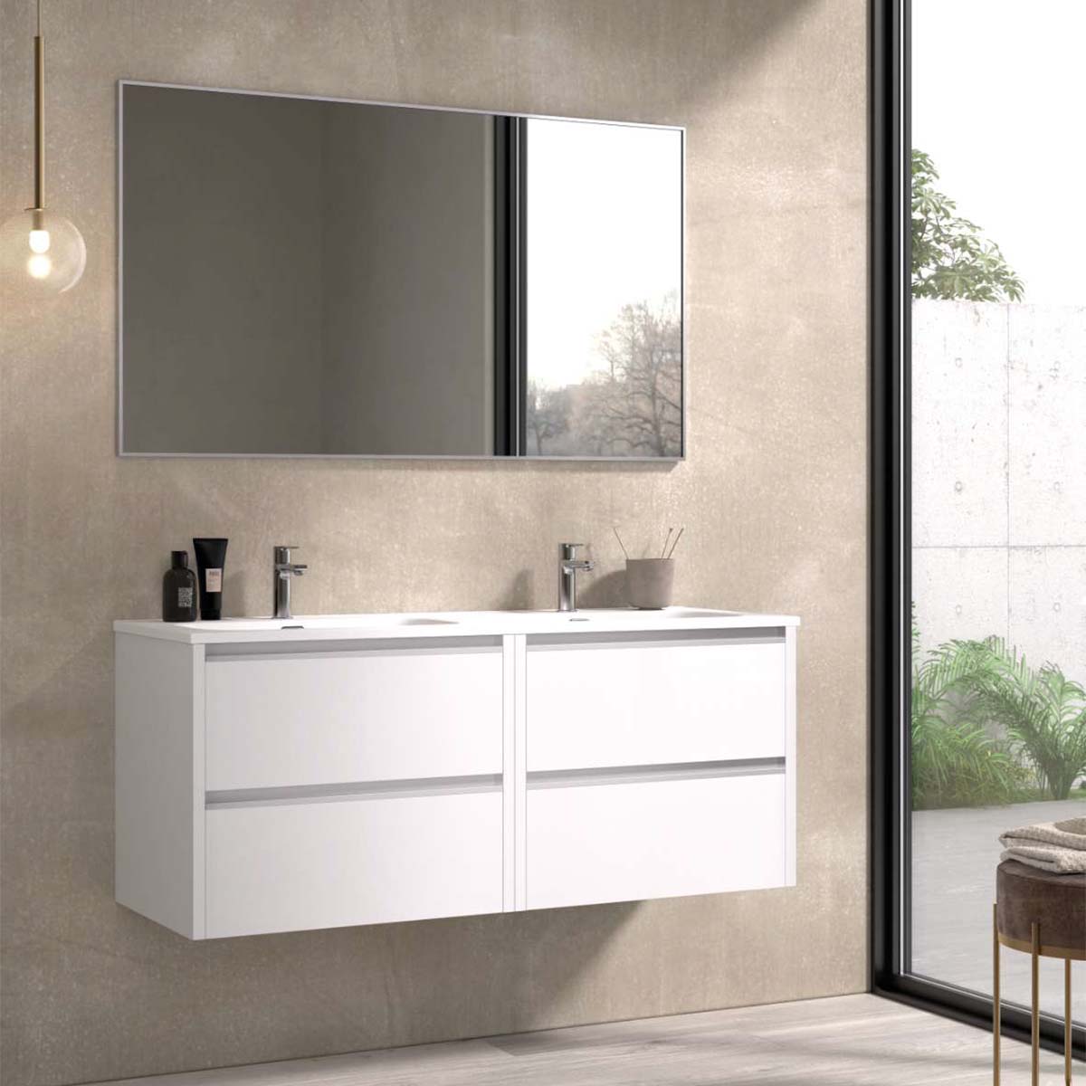 Colección inspirada en líneas lisas con uñeros metálico de gran comodidad. Formada por muebles bajos porta-lavabos
